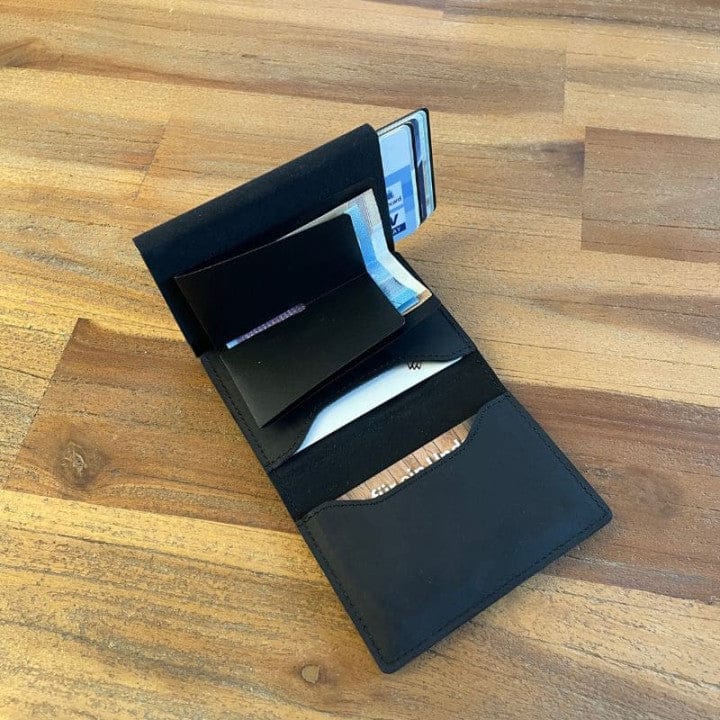Les billets de 100 € et plus peuvent légèrement dépasser si on les insère à plat. Pour un meilleur maintien et un rendu plus soigné, il suffit de les plier une seule fois. Ils se rangent alors parfaitement dans le compartiment prévu à cet effet.