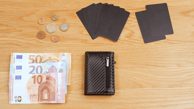 Les billets de 100 € et plus peuvent légèrement dépasser si on les insère à plat. Pour un meilleur maintien et un rendu plus soigné, il suffit de les plier une seule fois. Ils se rangent alors parfaitement dans le compartiment prévu à cet effet.